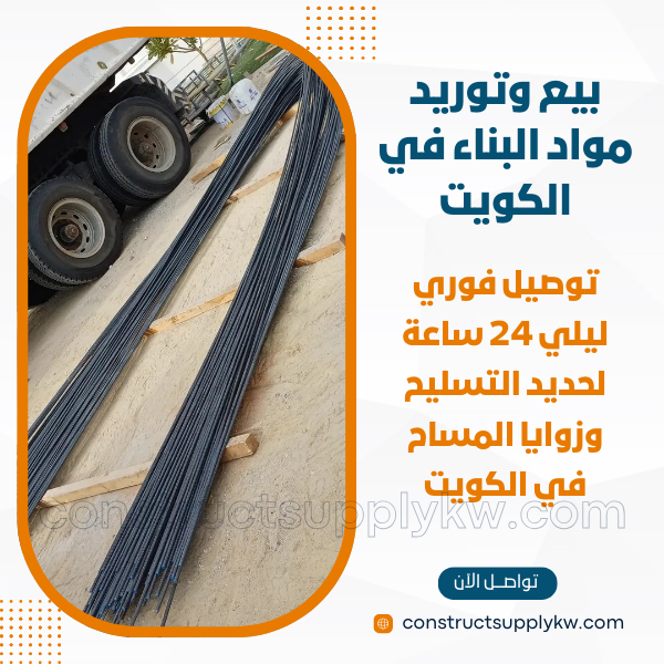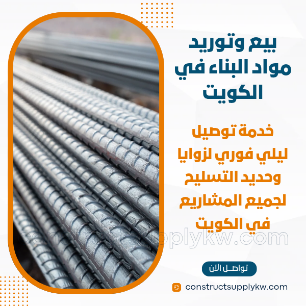 توريد حديد التسليح وزوايا البناء على مدار الساعة أصبح واحدًا من أهم الخدمات المطلوبة في سوق البناء الكويتي نظرًا لتسارع العمل في المشاريع.