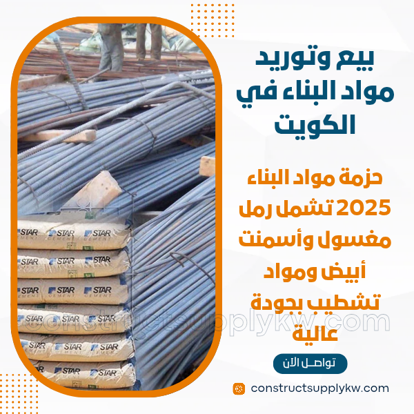 مواد بناء متوفرة فورًا في الكويت تعني عدم توقف العمل داخل موقع البناء حيث يمكن الحصول على الاسمنت والحديد والطابوق ومواد التشطيب في نفس اليوم